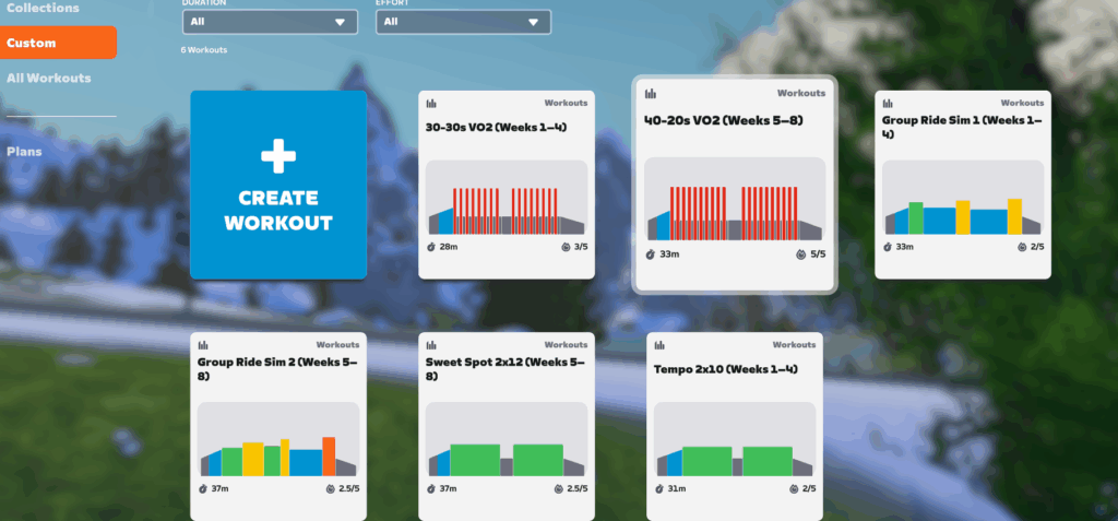 Anyhow, off hand, those look near ideal for my current level… the 30 30s don’t look fun, nor the 40 20s, but a 30 30 that looked fun, wouldn’t be effective. I’ll review it more fully at a later date, at least to what I can from a newbie level. The group ride simulations particularly have me interested, as I’ve never seen those say on Zwift’s own training plans.